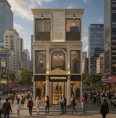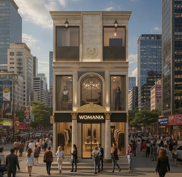 A classic-themed retail space designed to reflect Womania’s refined and sophisticated brand identity. The showroom embraces timeless architectural elements, luxurious finishes, and elegant detailing to create a warm, inviting atmosphere. Key features include intricate moldings, curated display niches, rich material palettes, and ambient lighting that highlights the merchandise while maintaining a sense of grandeur. Every element is thoughtfully designed to deliver a premium, immersive shopping experience, blending heritage-inspired aesthetics with contemporary retail functionality.
